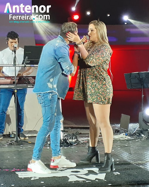 | Rafaela Mafra e Sérgio Santoriny soltam a voz no palco |