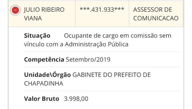 Foguinho para quem não sabe faturava alto no governo "bom demais", recebendo mensalmente quase 4 mil reais, segundo dados do Portal da Transparência. Confira no print abaixo: