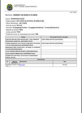 A coligação do candidato indeferido Júlio César têm sofrido inúmeras derrotas na justiça . Na noite de hoje, 05/11/2020, a justiça eleitoral determinou que a coligação de Júlio César (“ Anapurus para todos”) NÃO REALIZE reunião política no dia 06/11/2020, no povoado Água Rica, sob pena de multa diária de R$ 100.000,00 ( cem mil reais) se houver descumprimento.
